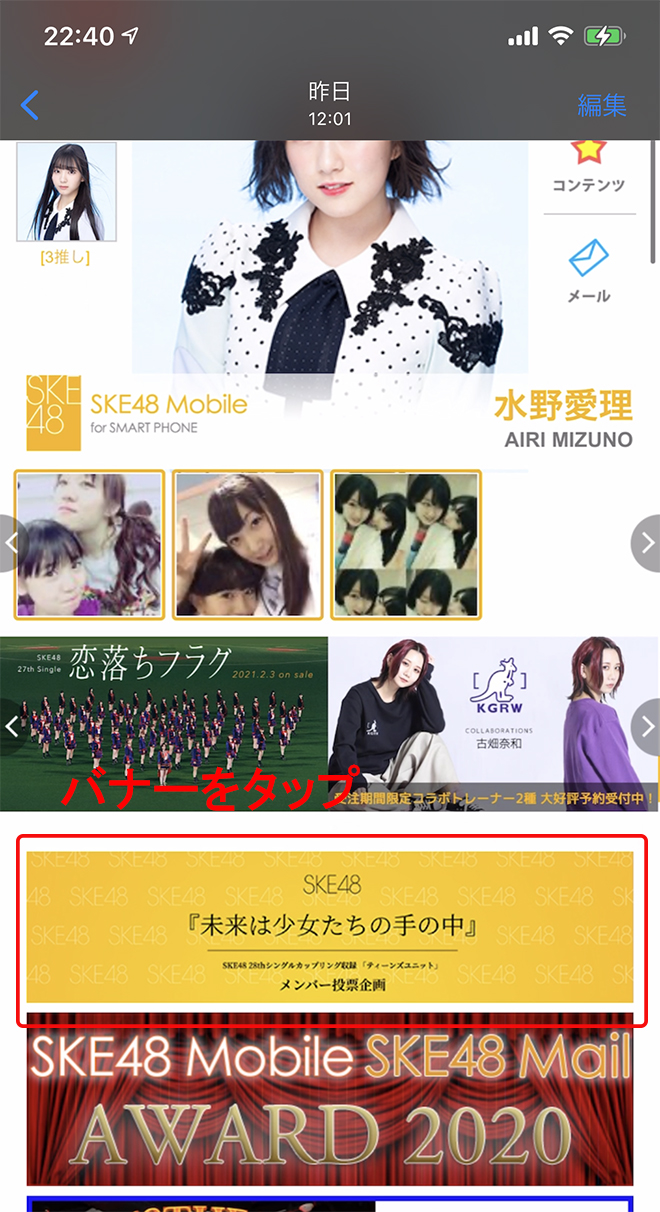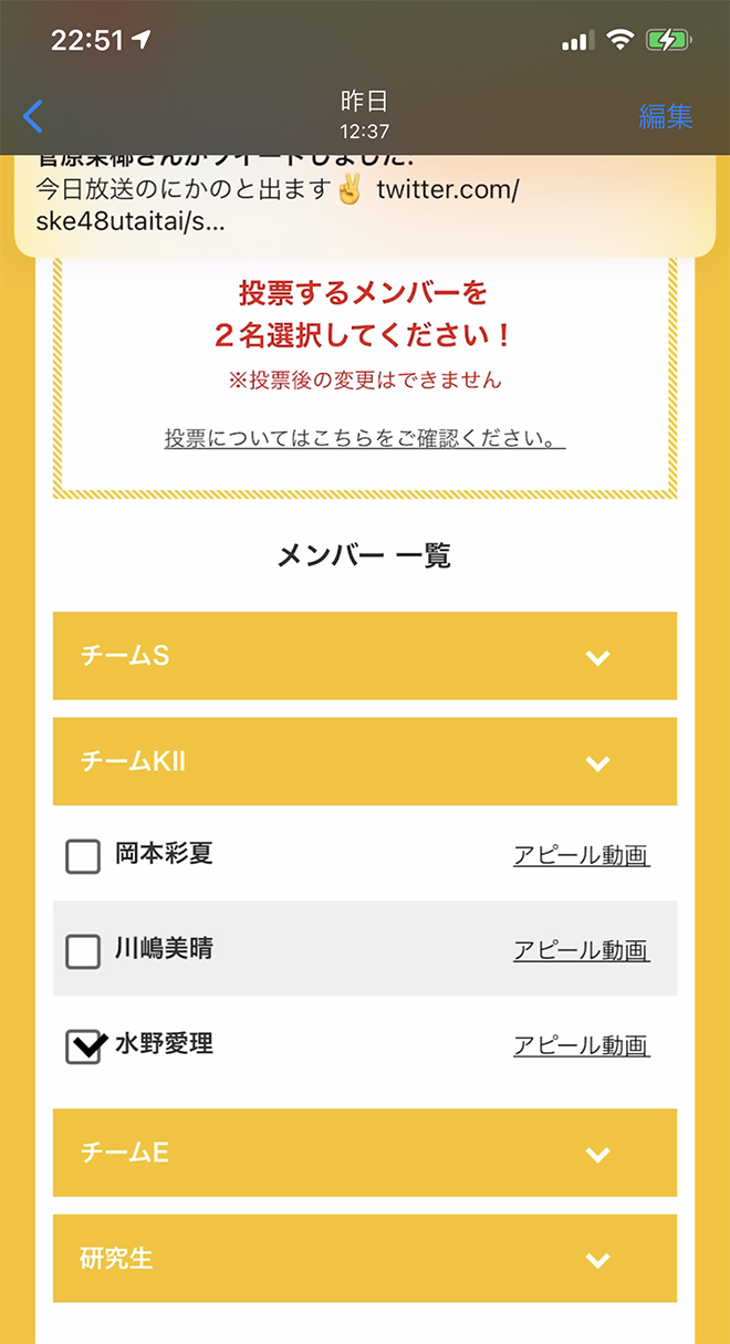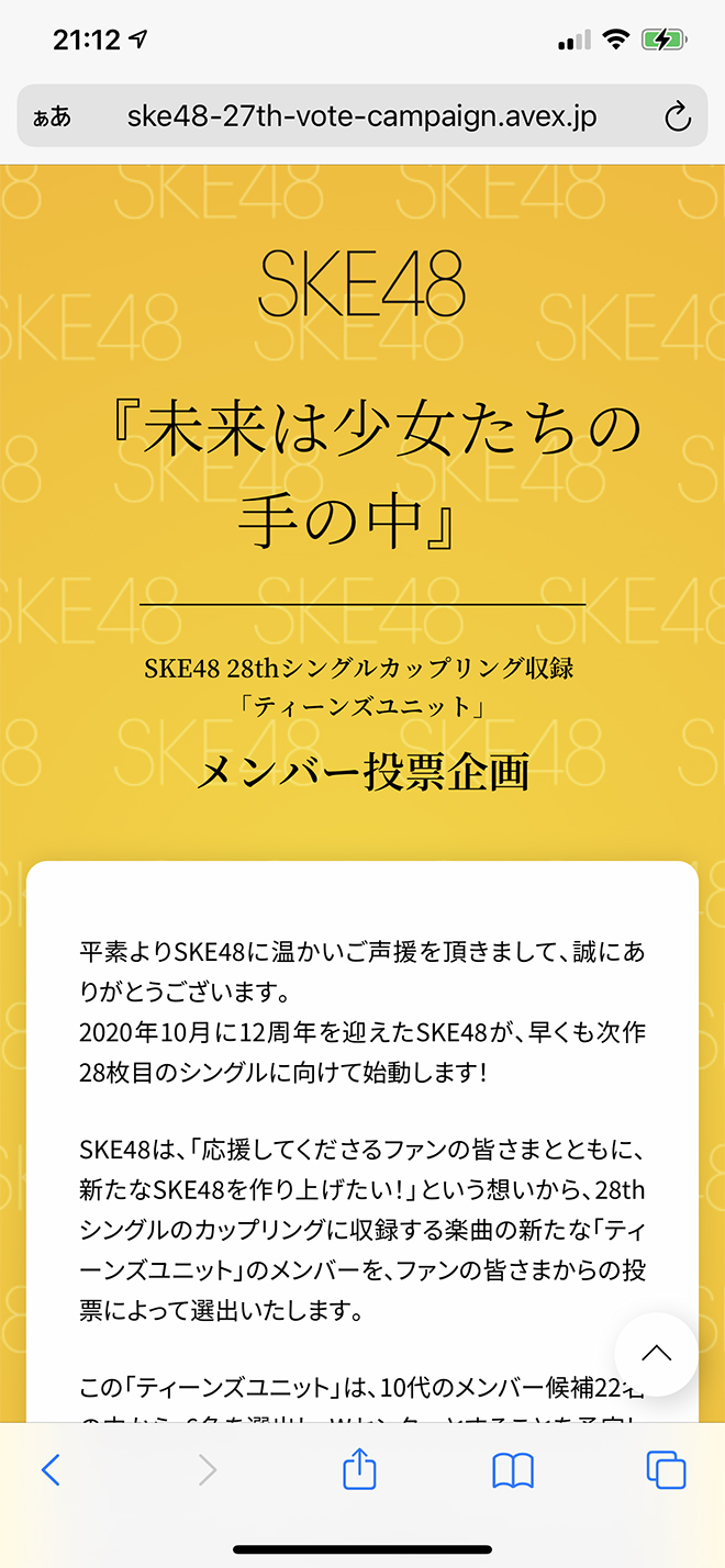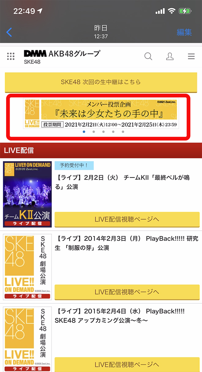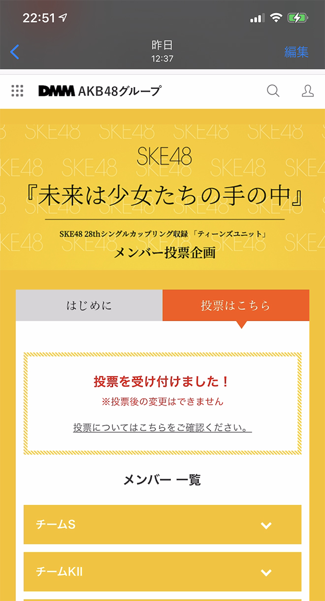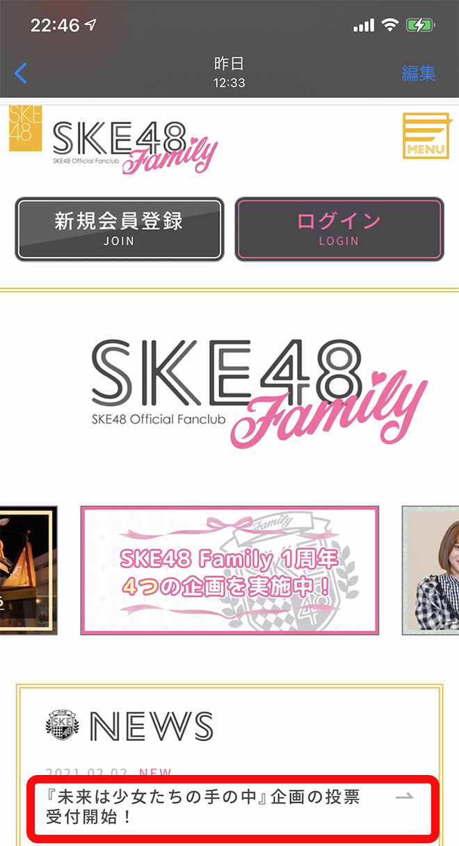 SKE48 familyを開き、「未来は少女たちの手の中」企画の投票をタップします