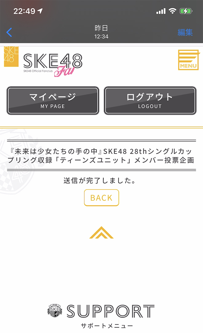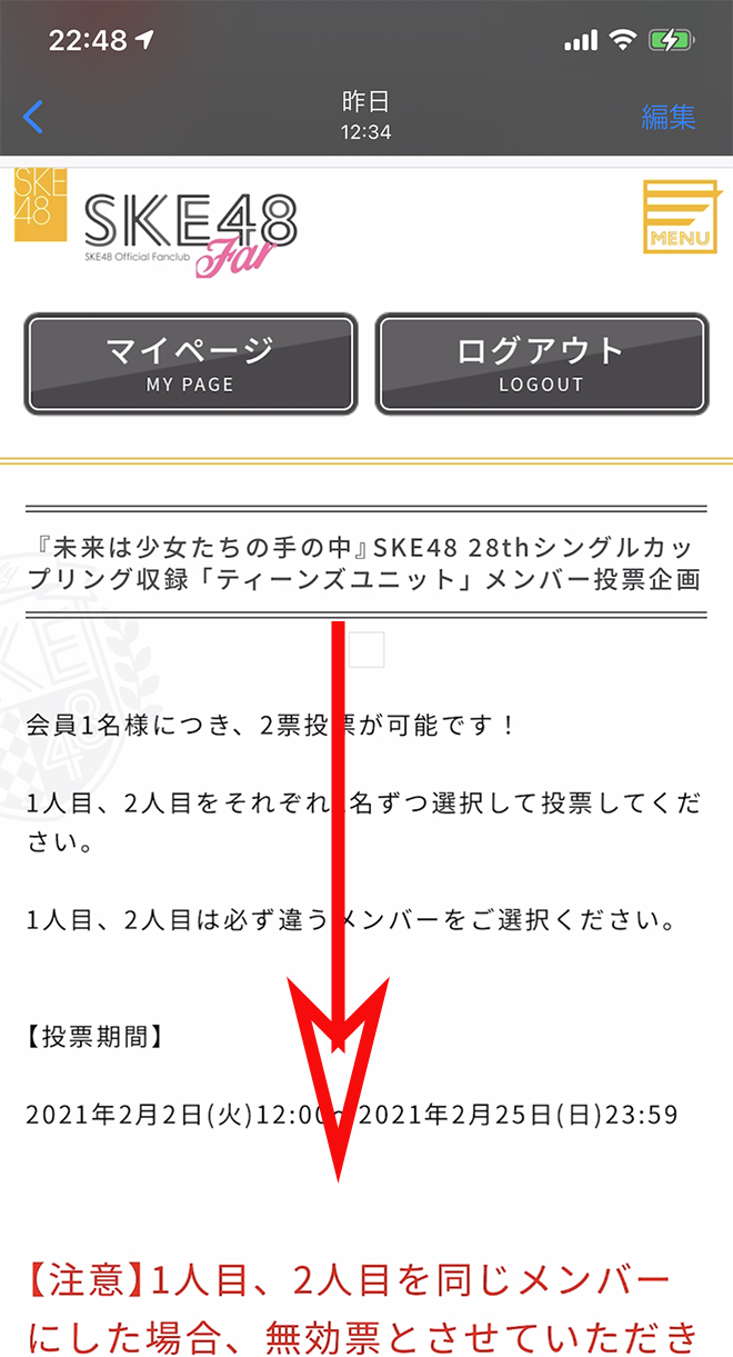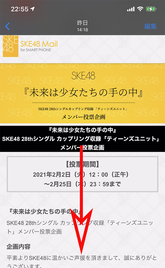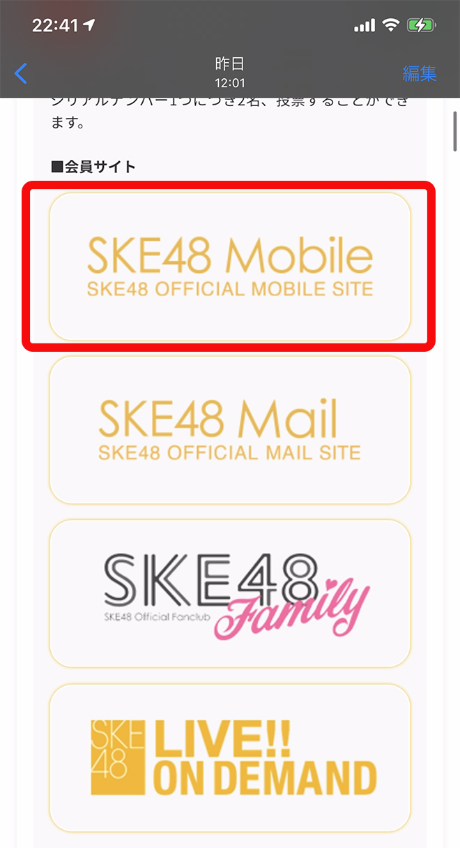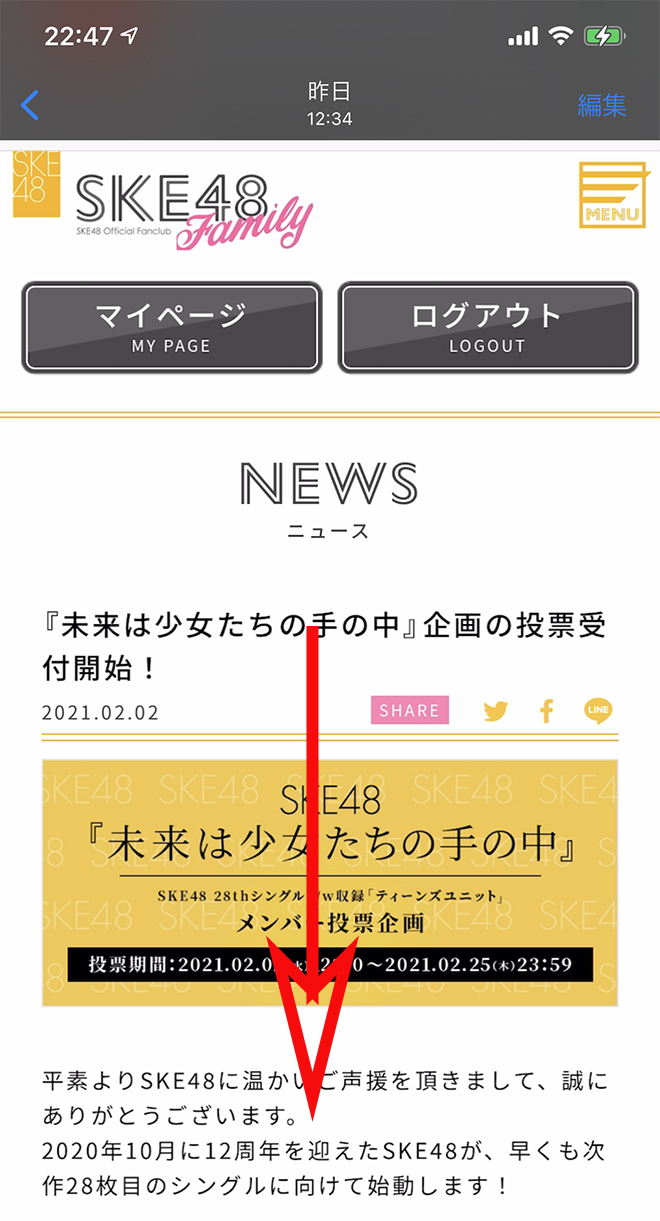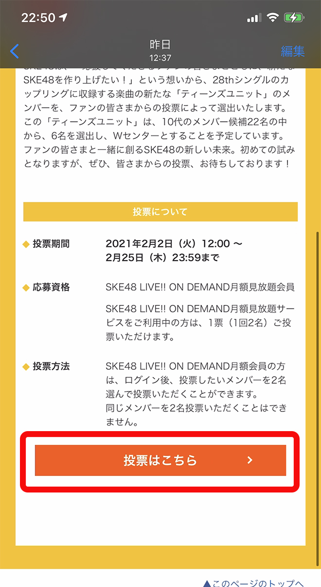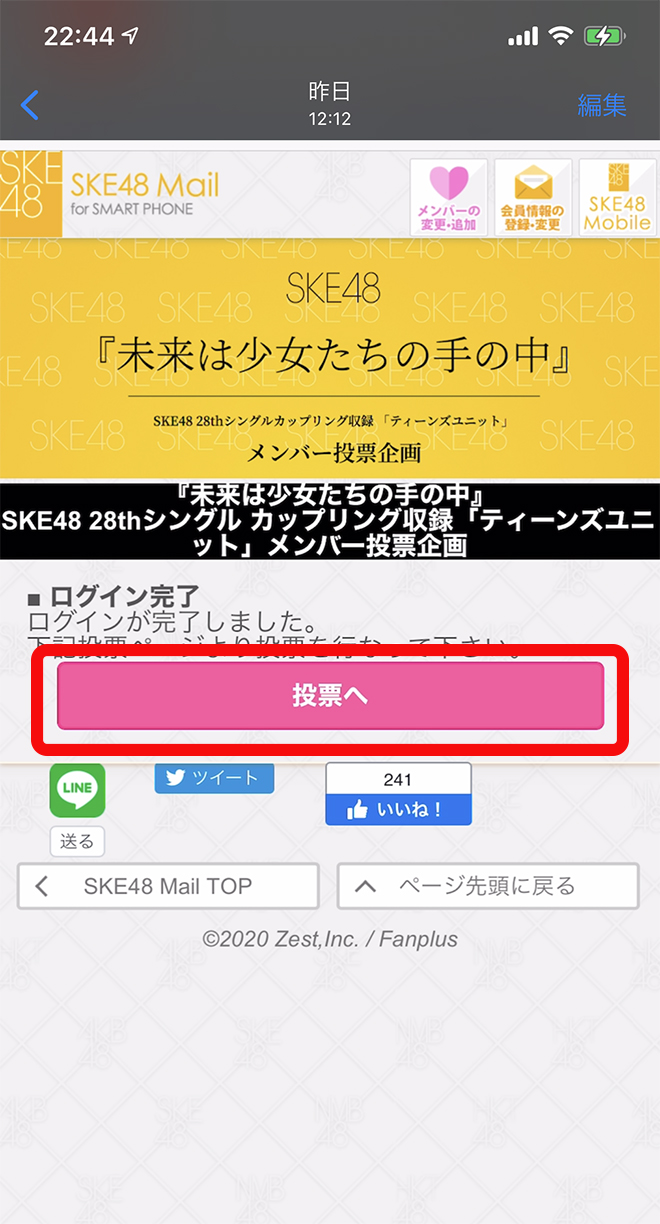 SKE48 familyを開き、「未来は少女たちの手の中」企画の投票をタップします