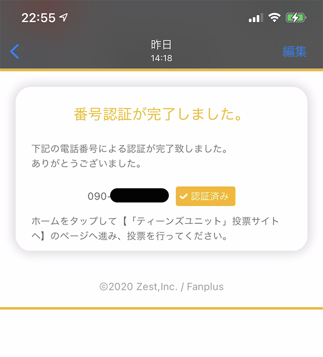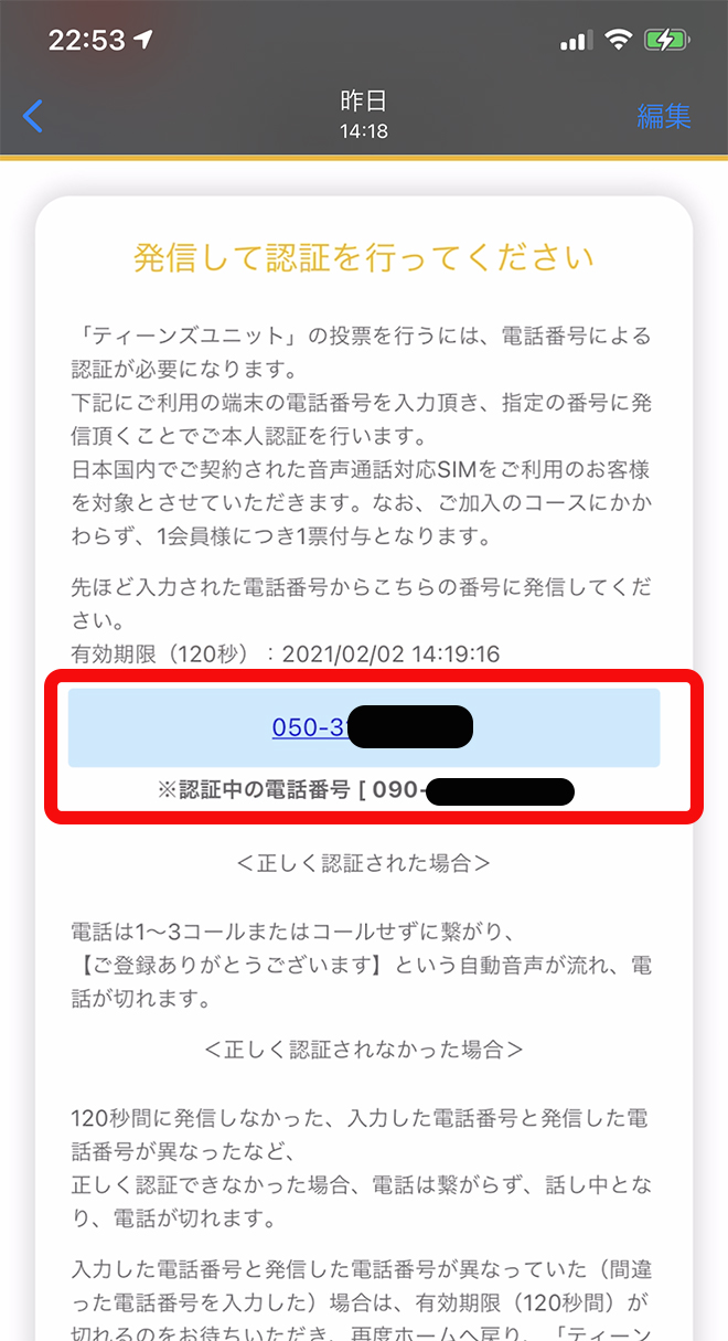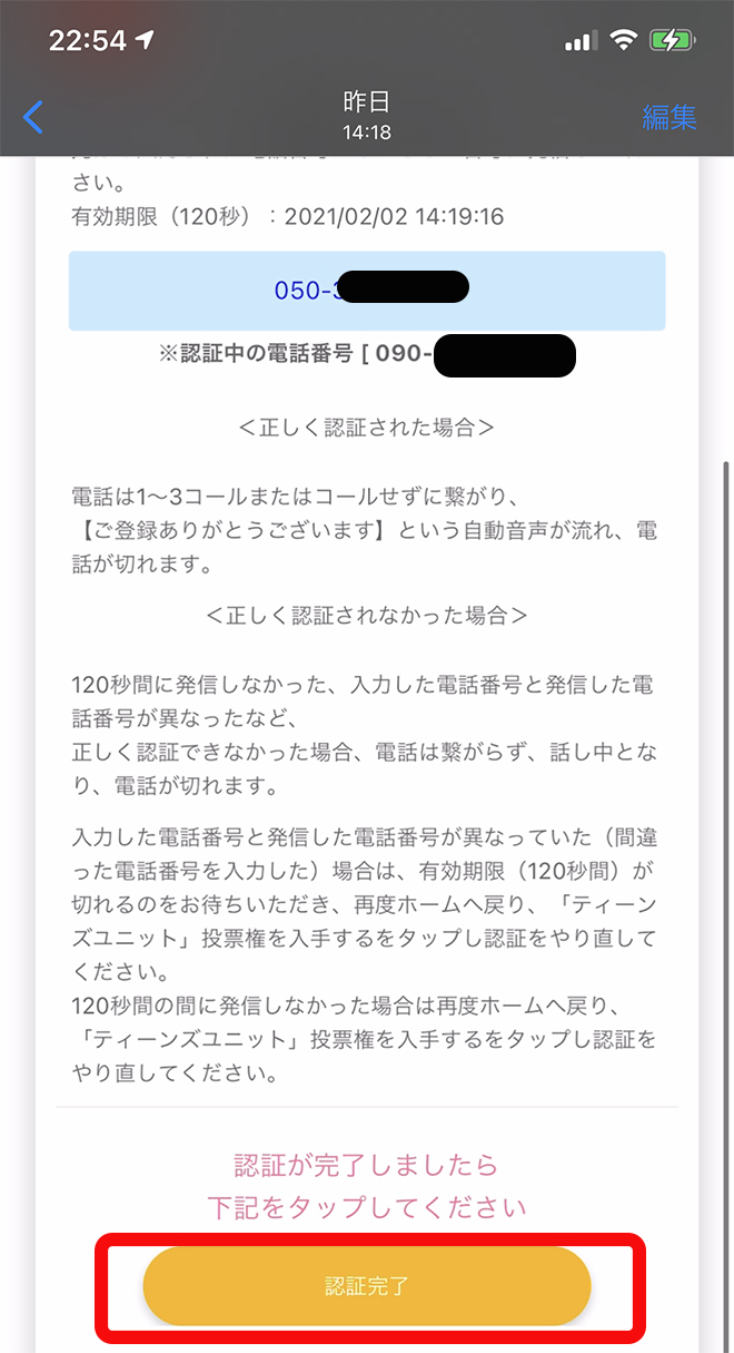 ご自身の電話番号を入力し、この電話番号を認証するをタップして下さい